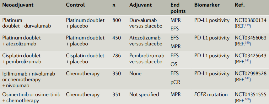 图3:非转移性NSCLC新辅助治疗正在进行的Ⅲ期研究